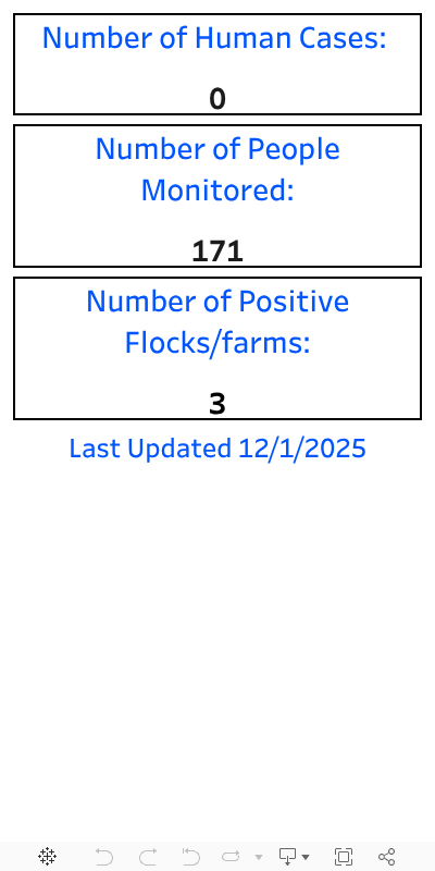 In partnership with the CDC and the Mississippi Board of Animal Health, MSDH is enhancing monitoring for signs of avian influenza in humans. To support rapid response to human infection, MSDH has prepositioned testing kits and personal protective equipment (PPE) across the state.